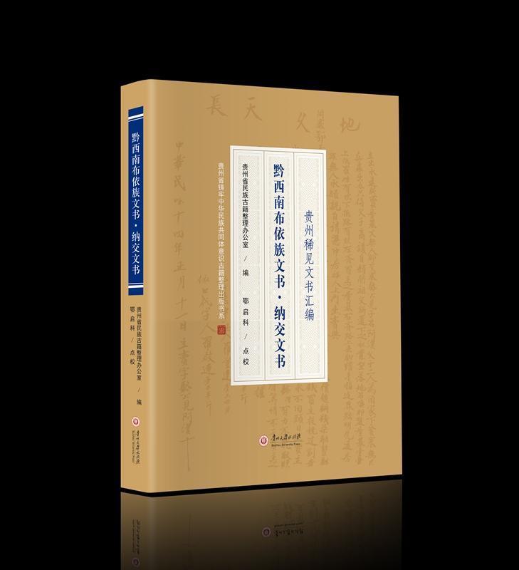 近日,《黔西南布依族文书·纳交文书》由贵州大学出版社正式出版发行。该书由贵州省民族古籍整理办公室编纂、鄂启科整理点校,系“贵州省铸牢中华民族共同体意识古籍整理出版书系”之一,也是国家社科基金重大招标项目“滇黔桂越边区百部珍稀土俗字文献收集译注与研究”的阶段性成果。